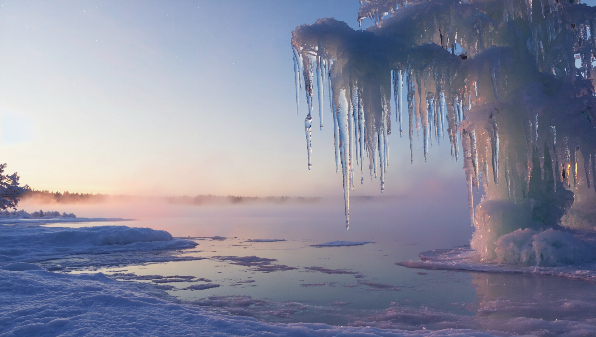 凍った湖とつらら【フリー画像素材&動画素材】