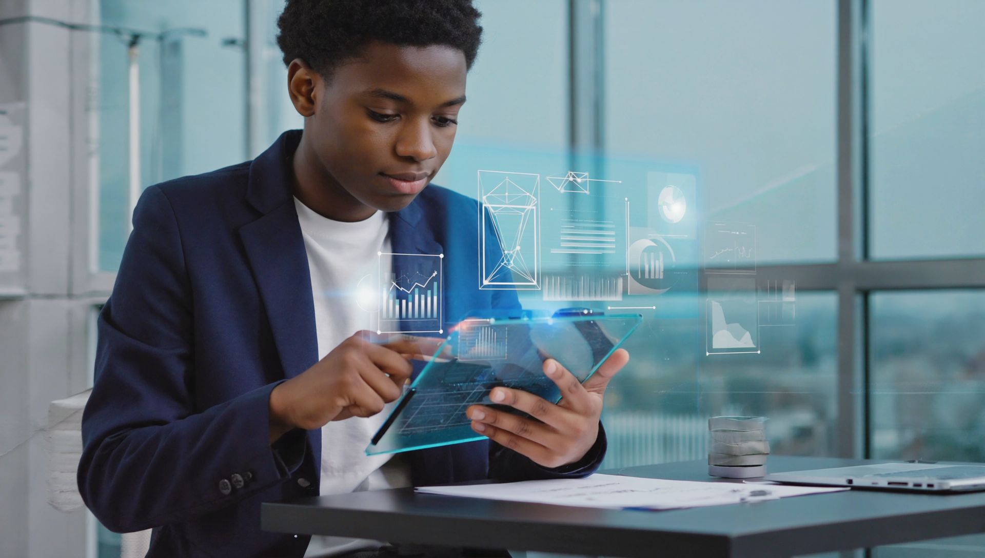 ホログラムタブレットを操作する男性【フリー画像素材&動画素材】