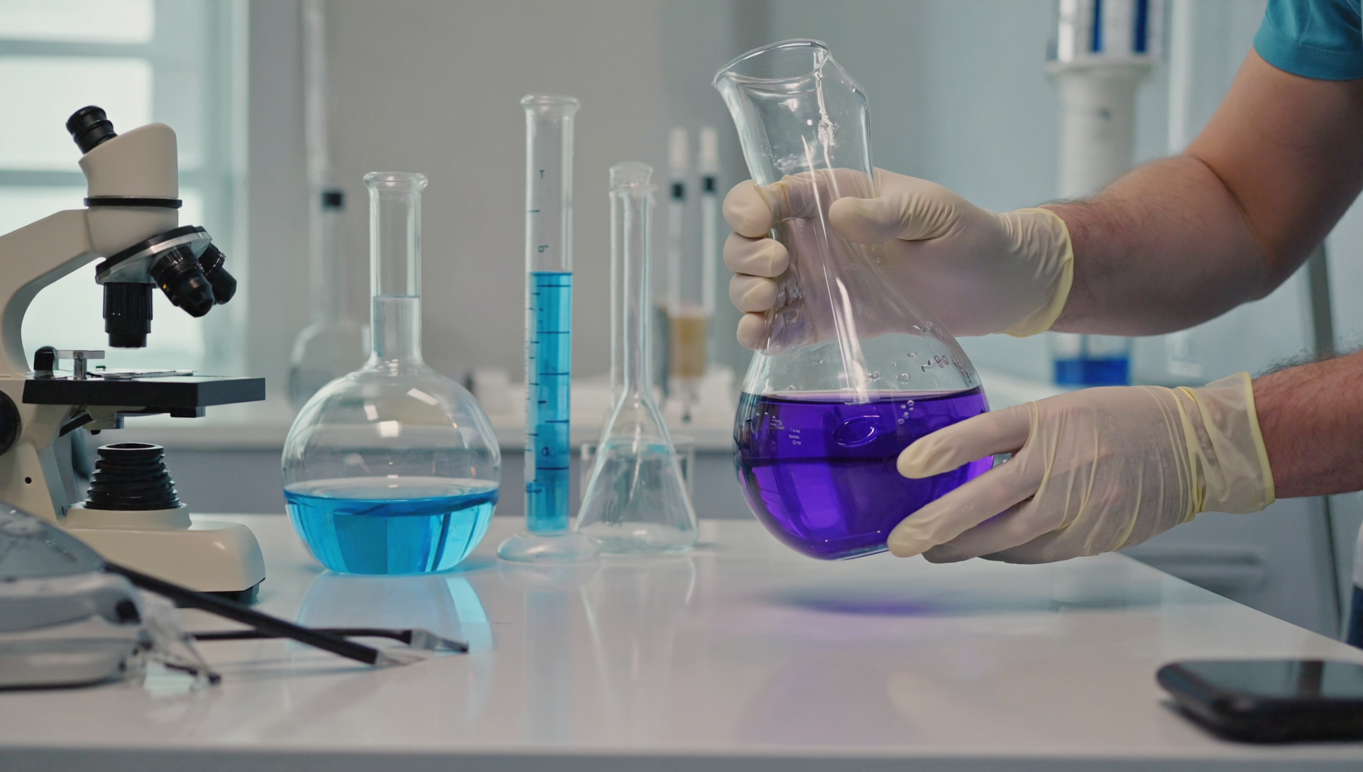 実験器具を使って実験する様子-03【フリー画像素材&動画素材】